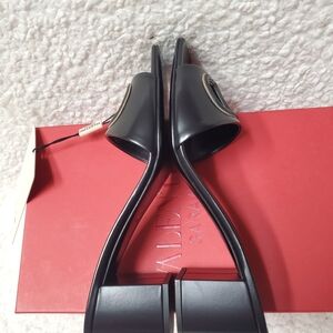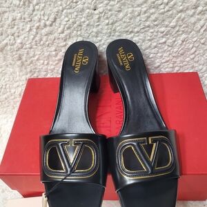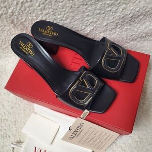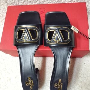 Valentino Garavani VLogo cutout slide sandal in calfskin.