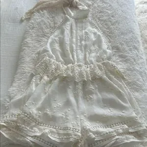 Zimmermann Ivory silk Lace Playsuit US6-8 backless design halter top neck *Flaws