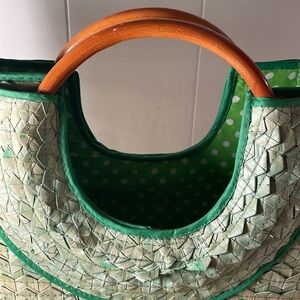 Green Woven Kelly Green Handcrafted Straw Tote Bag with Wooden Handles