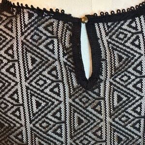 This is a black, long-sleeved blouse from H&M in size XS. It does not have a lining. 100% Polyester.