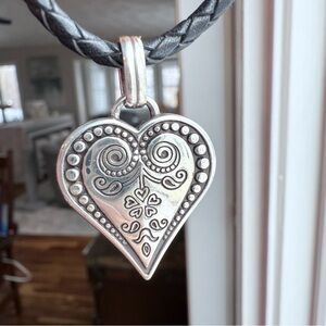 NWOT Brighton silver heart pendant necklace in flawless condition — no wear, scratches, or tarnish. Beautiful engraved scroll detailing in Brighton’s signature romantic style.