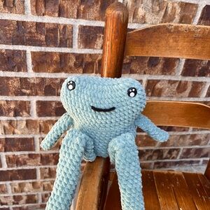 Adorable plush frog toy with a soft texture. Perfect for cuddling. Measures 4.5”x5”