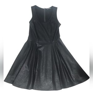 Express Shimmering "Leather Look" Fit And Flare Sleeveless Skater Black Dress. S