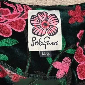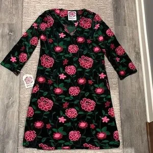 Lesley Evers Equipment Rose Aubrey Floral Shift Black Dress Size L