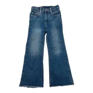 Stylish GAP Denim 70’s flared kids jeans. Classic blue denim with frayed bottom hem. Comfortable adjustable elastic waistband.