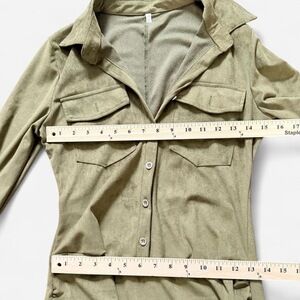 Khaki green velvet button up dress with ruffle hem whimsygoth size small