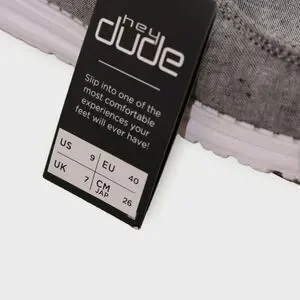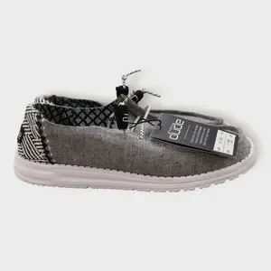 NWT! Hey Dude Wendy Chambray Woven Onyx Size US 9 New With Box The NWT Hey Dude Wendy Chambray Woven Onyx in size US 9 is a comfortable and stylish sneaker designed for women. The black fabric upper material, along with the woven chambray fabric type, creates a versatile and on-trend look. Perfect for walking, school, or beach activities, this shoe offers both practicality and fashion in a casual design. The Hey Dude Wendy model ensures a quality product that is both new in box and ready to be worn.