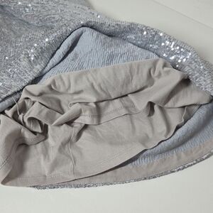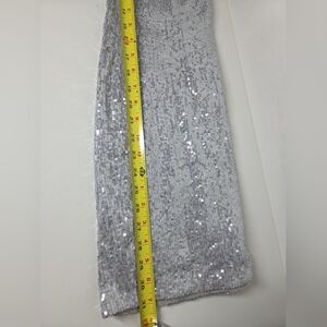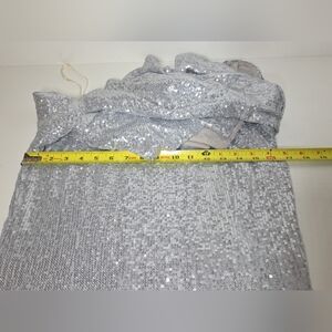 The NEW Boston Proper Silver Sequin Off The Shoulder Dress is a stunning and elegant option for various formal occasions, such as parties, weddings, or cocktail events. The dress features a fishtail mermaid style with 3/4 sleeves and a zip closure, made of polyester material with sequin accents. The off-the-shoulder neckline adds a touch of sophistication, while the mini length and bodycon silhouette are perfect for creating a glamorous and chic look. Ideal for the summer and spring seasons, this dress is a stylish choice for those looking to make a statement at any special event.