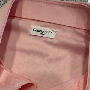 Men’s pink collars and co dress collar polo shirt size large 100% polyester