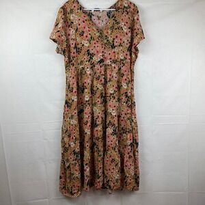 Sonoma Floral Tiered Midi Dress Women XL Multicolor Boho Cottagecore Babydoll