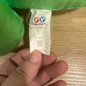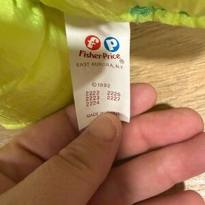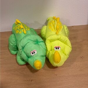 Fisher Price Puffalump Dino Roars Green and yellow Triceratops Dinosaur Plush Vintage 92. Makes noise when you squeeze it. Comes with both.