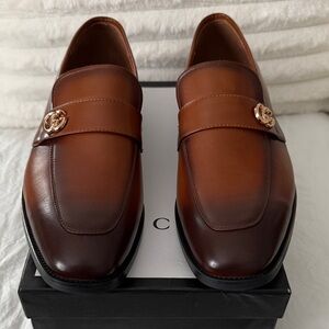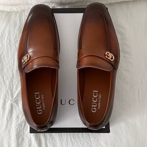 Elegant slip-ons with signature Gucci emblem. Perfect for versatile wear. Men’s size 12!