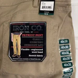 NWT Iron Co Patriot Pants 40x30 Classic Comfort Straight Leg Khaki