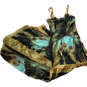 Vibrant dress with artistic design. Features multicolor accents. Unique style by Jean Paul Gaultier.
