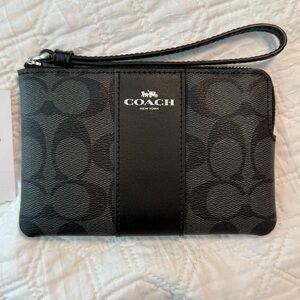 Coach Corner Zip Wristlet in Signature Canvas Black and Silver NEW