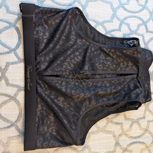 Victoria Secret Black Halter Crop Top W/ Cheetah Design. Size Large