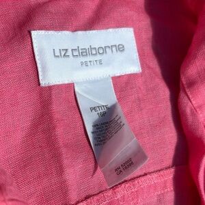Liz Claiborne 100% Linen Vibrant Pink Button Down Blouse Size 16P