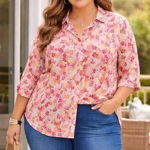 Elevate your wardrobe with the Laura Scott Long Sleeve Button-Up Shirt, a versatile addition that brings a touch of elegance to any casual occasion. Adorned with a colorful floral pattern, this shirt is a perfect blend of comfort and style. The collared neckline and classic fitted sleeves offer a timeless look, while the button closure adds a traditional touch. Crafted from soft, breathable cotton, this garment is designed for all-season wear. Whether you're dressing up for a day at the office or heading out for a weekend brunch, this shirt's 24/26w regular fit ensures ease of movement and a flattering silhouette. Machine washable for easy care, it's a practical choice for any woman's collection.