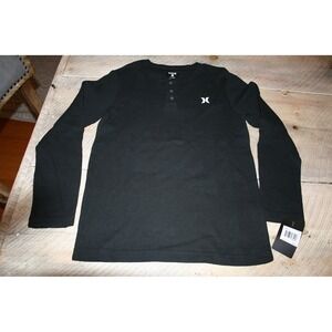 Hurley Henley Shirt Boys Large L Black NEW Waffle Knit Long Sleeve 986641-023