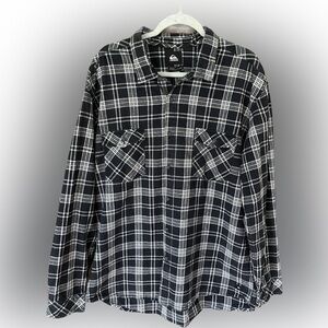 Quiksilver Plaid Flannel Modern Long Sleeve Black & Tan Button Up Men’s XXL