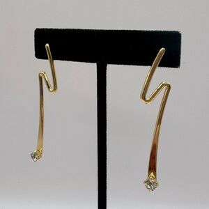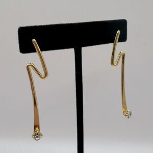 VINTAGE Gold-Tone Crystal Zig Zag Earrings