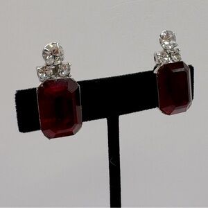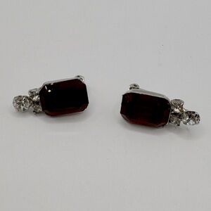VINTAGE Red Crystal Clip-On Earrings