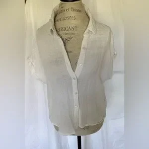 Ci Sono L.A Women’s Gauze Linen Button Down Blouse in True White Sz XL