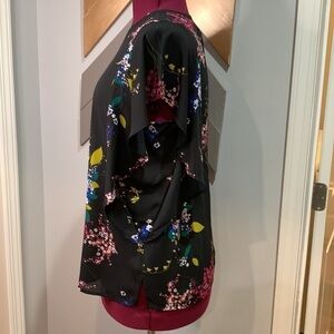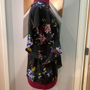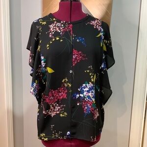 Worthington Black floral flutter sleeve blouse with open fretwork