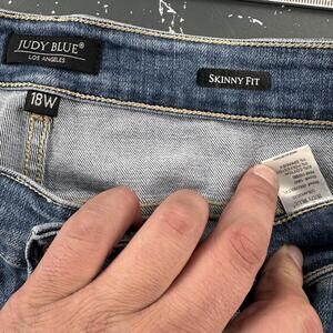 Judy Blue Jeans in size 36x28, featuring a blue distressed design with a skinny fit and cropped length.