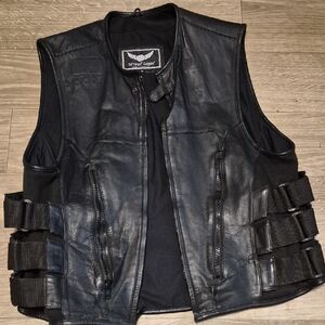 STREET LEGAL MENS RIDING Black Leather Vest with Adjustable Straps