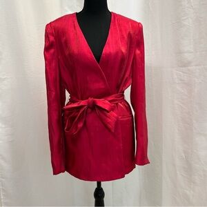 ZARA Women's Blazer Wrinkle Effect Belted fuchsia Hot Pink NWOT Sz M relaxed fit