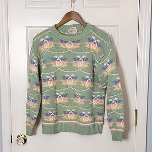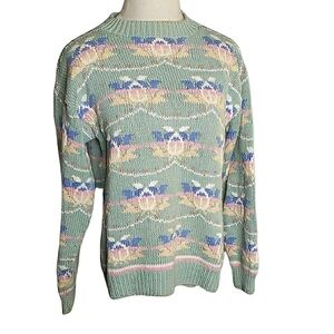 Vintage Izod Hand Knit Pastel Cottagecore Granny Core Soft Girl Easter Sweater M