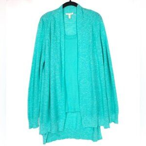 SET EILEEN FISHER Women 100% ORGANIC COTTON Knit Open Cardigan + Tank Top S/P R40RB Aqua