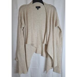 AQUA Cashmere Draped Open Front Cardigan Sweater Size M Wheat Long Sleeve Knit