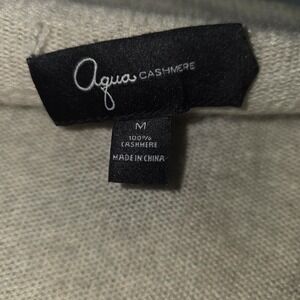 The AQUA Cashmere Draped Open Front Cardigan Sweater in Size M is a luxurious and stylish piece of women's clothing. Made from high-quality cashmere material with a tight-knit fabric, this sweater features a solid beige color and long sleeves, making it versatile for various outfits. The open front design adds a touch of modern flair, perfect for a casual or dressy look. The Aqua brand ensures both quality and style, making this sweater a desirable addition to any wardrobe.