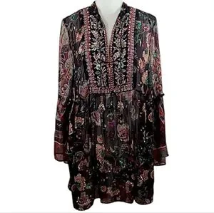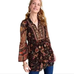 Soft Surroundings Asteria Beaded Sequin Tunic Top Varenna Plum Mixed Floral Sz S
