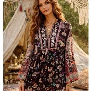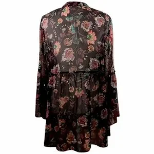 boho bohemian peasant hippie chic indie sleeze embellished sheer mixed print dark floral brunch garden party vacation oversized