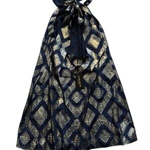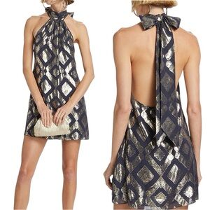 Brand new with tags Ramy Brook Metallic Sam mini dress in navy with a metallic geometric jacquard pattern