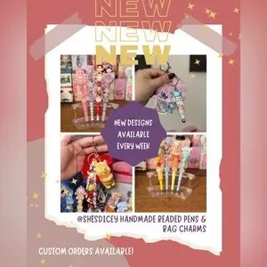 Handmade Beaded Pens and Bag Charms by @Shesdicey!