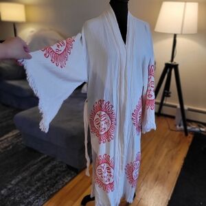 Sun Motif Cream and Orange Kimono Robe Size M/L