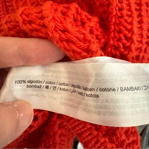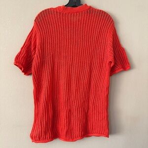 Zara Red Orange Cotton Crochet Short Sleeve Top Size S