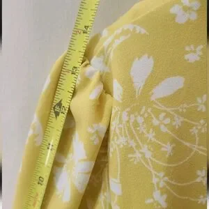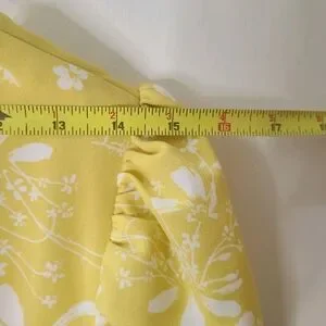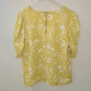 Mellóday Golden Yellow & White Floral Short Puff Sleeve Blouse Sz L NWT