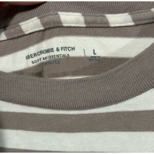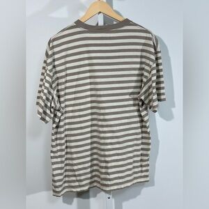 Abercrombie & Fitch SoftAF Striped Oversized Pocket Tee – Taupe & Cream, Size L