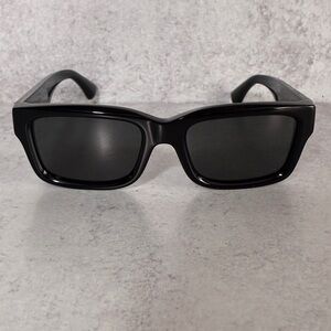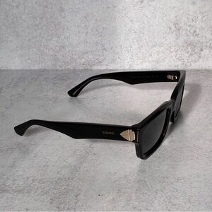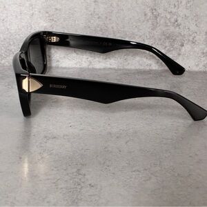 A sharp, architectural rectangular silhouette finished with Burberry’s signature gold temple hardware — a modern, fashion-forward design that feels both timeless and statement-making.
