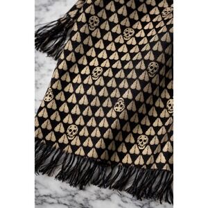 Alexander McQueen Scarf Unisex OS Gold Black Silk Skull Heart Fringe Italy Luxe