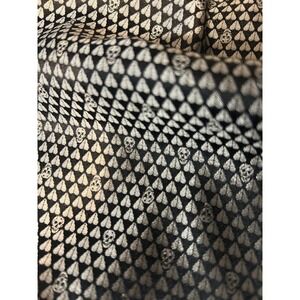 Keywords: Designer, Gothic, Skull Print, Heart Pattern, Italian Silk, Luxury Accessory, Metallic, Edgy, High Fashion, Evening Wear, Punk Chic
