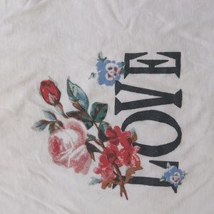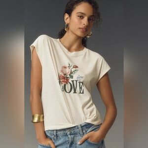 Anthropologie Cream Floral Love Graphic Muscle Tee
