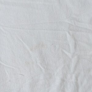 100% cotton, soft fabric. Features 'LOVE' graphic. Please see last photo as there is a mark on the back of the shirt. No other flaws.
