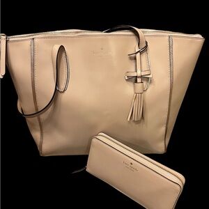 Stylish Kate Spade tote with matching wallet. Elegant cream color. Perfect for daily use. gently used very clean and it is a original, not a inspired Kate Spade.