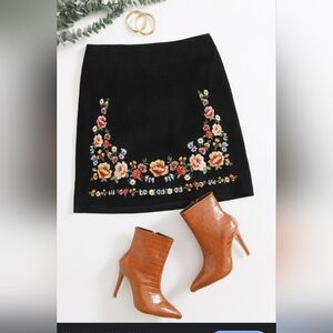 Forever 21 Black Mini Skirt with Floral Embroidery